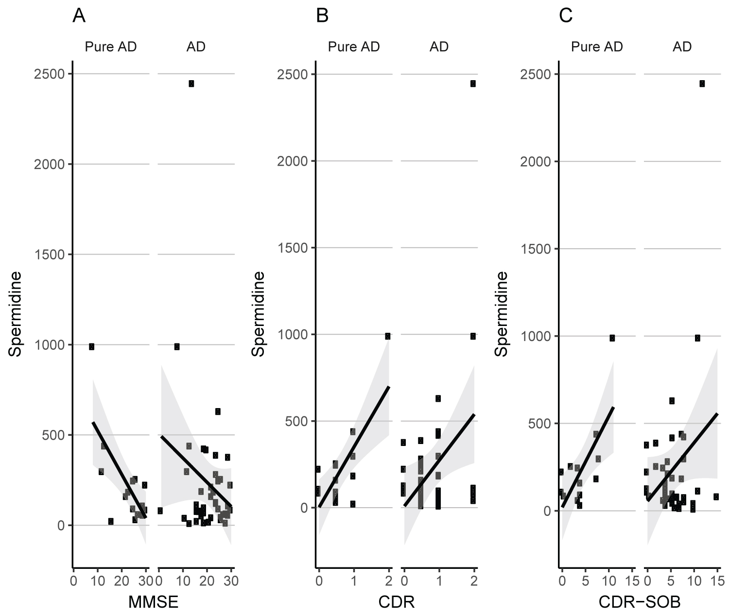 • Spermidine serum levels correlated with MMSE, CDR, and CDR-SOB