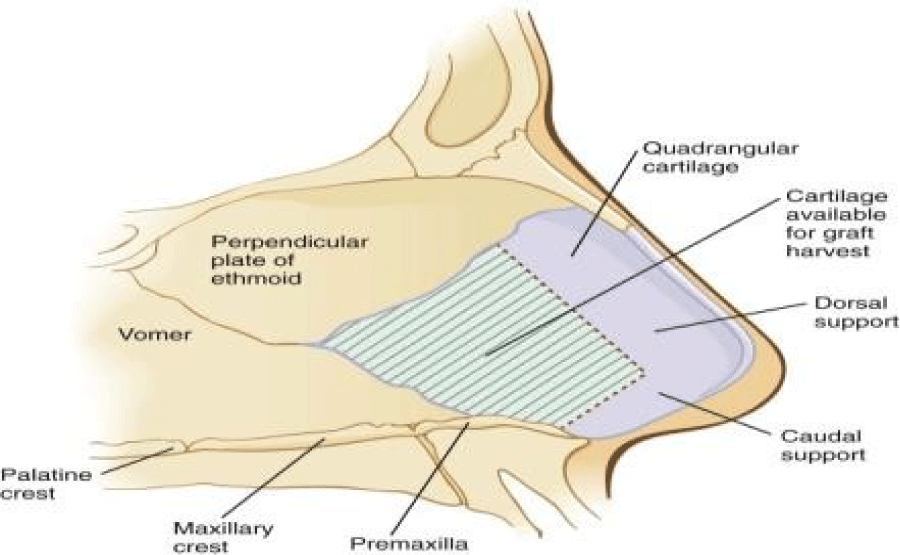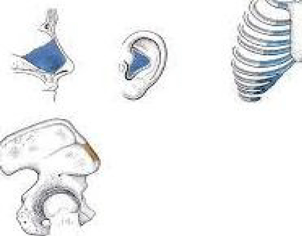 Usually, autogenous cartilage is harvested from either the septum, auricle, or rib and each of them is used in different clinical situations based on its specific properties (Figure 1).
