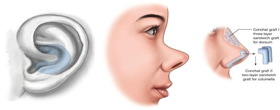 Different graft materials are used in plastic surgery of the nose, mainly 3 types of grafts are used; [8-23]