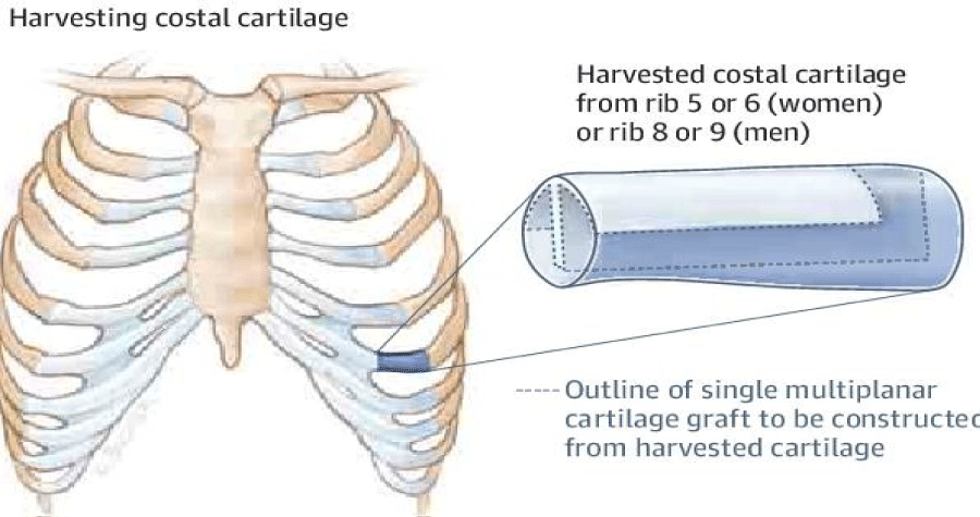 The use of costal cartilage is dictated by a number of features of its structure, which have a number of obvious advantages [33].