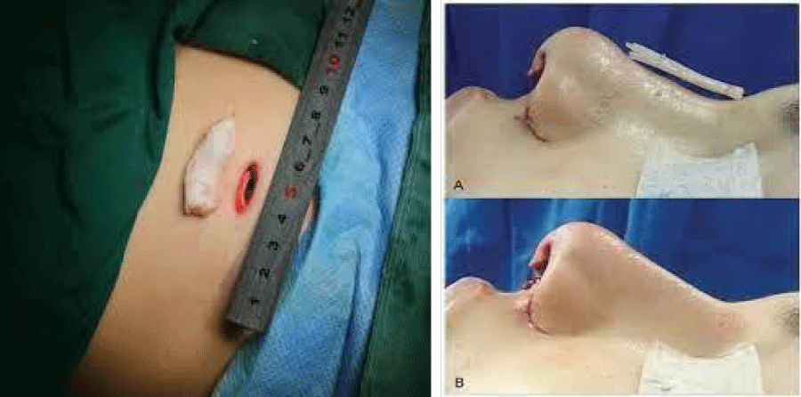 However, the difficulties associated with obtaining costal cartilage such as various complications: prolonged pain, pneumothorax, scarring, second surgical site make many patients reluctant to resort to this method [15,34] (Figure 7, Figure 8 and Figure 9).