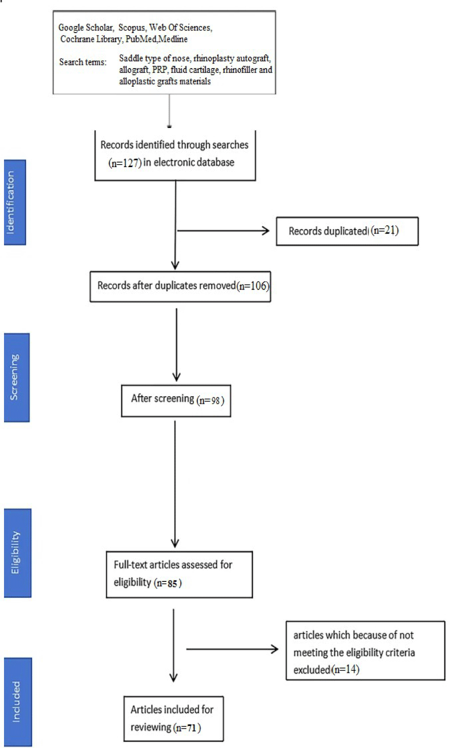 From the 127 articles considered in the analysis, 71 articles that met the inclusion criteria were included. Review was conducted according to the PRISMA guidelines (Table 1).