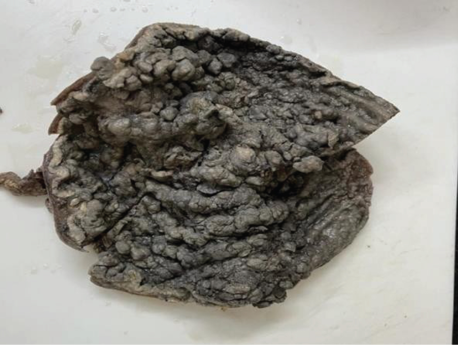 Gross: Gastrectomy specimen of size measuring 27 cm along greater curvature and 13 cm from lesser curvature was received with smooth external surface without perforation. Entire mucosa was replaced by numerous polypoidal growth of varying sizes ranging from 0.8 cm × 0.8 cm × 0.5 cm to 3 cm × 3.5 cm × 2.5 cm. Oesophageal part of 6 cm in length noted with external serosal surface free of tumour deposits. Large lymph node 9 × 6 × 4 cm noted (paraaortic) capsulated and congested. Cut surface reveals white, hemorrhagic and necrotic tissue. Oesophageal and jejunal cut ends measuring 3 cm and 2.5 cm in length received and were free of tumours grossly. Excised omentum reveals metastatic tumour deposits (Figure 1, Figure 2, Figure 3, Figure 4, Figure 5 and Figure 6).
