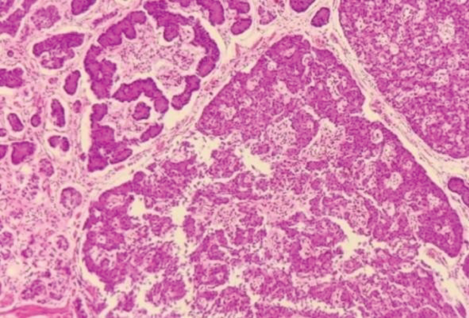 Microscopy: Well differentiated Neuroendocrine tumour which is grade I (G1), multifocal with mitotic rate of < 2/HPF, Ki-67 index is < 3%. Tumour involves muscularis propria with negative margin and lymphovascular invasion present but no perineural invasion. Out of the total 17 lymph nodes received, 12 had metastatic tumour deposits. Tumour is positive for both Synaptophysin and chromagranin but negative for cytokeratin 7 (CK-7) IHC markers.