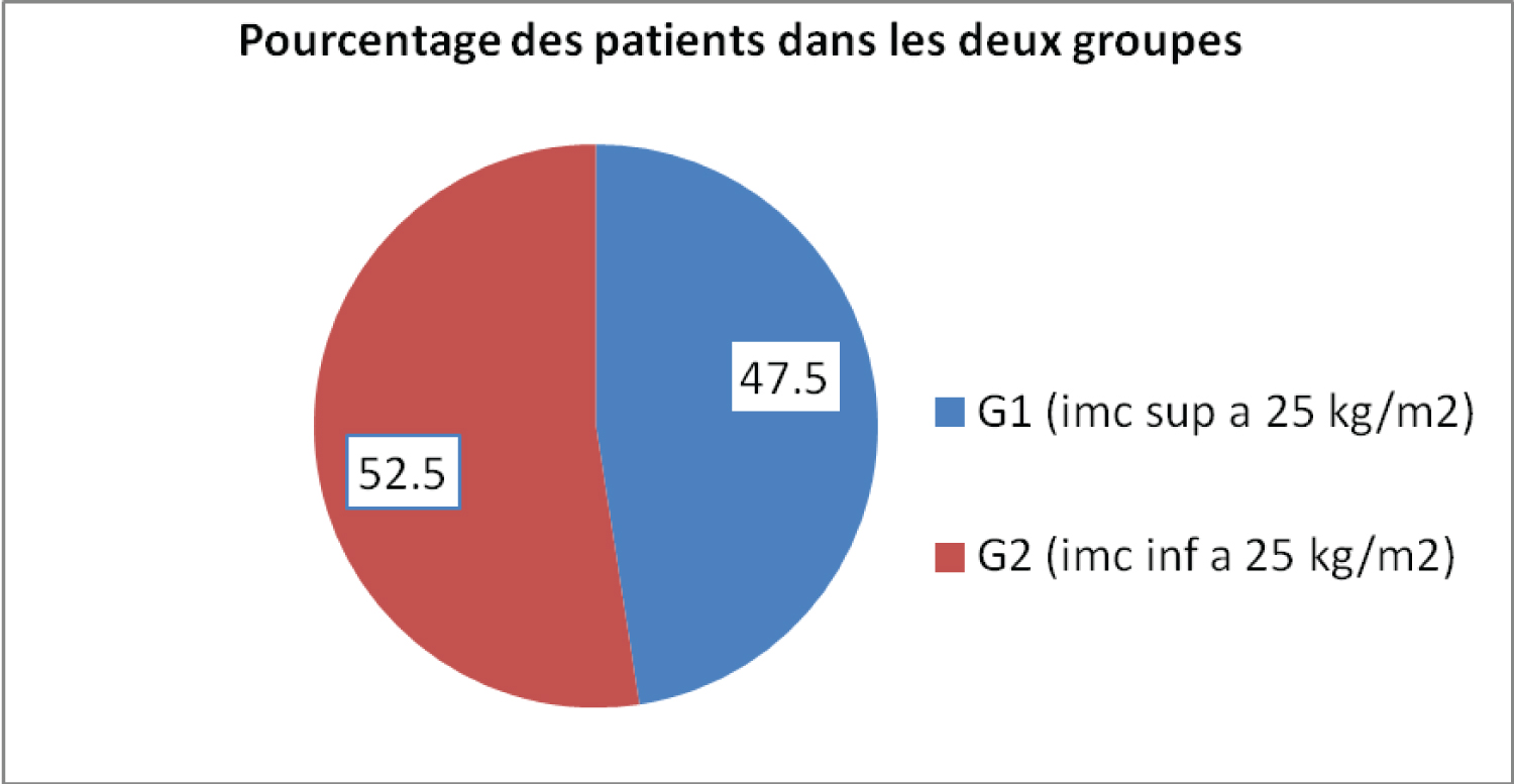 Two groups were compared: G1 group of patients with BMI >= 25 kg/m 2 ; G2 group of patients with BMI < 25 kg/m 2 . The statistical study was carried out using SPSS 20.0 software.