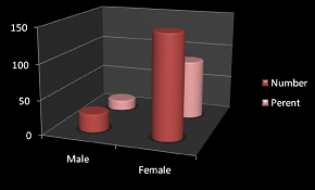 173 cases included in this retrospective study, The age of the patients ranged between 9-71 years old with a mean 37.59 and standard deviation 11.92, 147 (84.97%) were female and the remaining 26 (15.03%) cases were male Figure 1 with F:M ration 5.65:1.