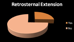 Among 47 cases that underwent operation based on pressure symptoms, only 12 of them had retrosternal extension and among toxicity indications only 9 (14.29%) cases diagnoses as Graves ’ disease and the rest were non graves thyrotoxicosis, Figure 4 and Figure 5 respectively.